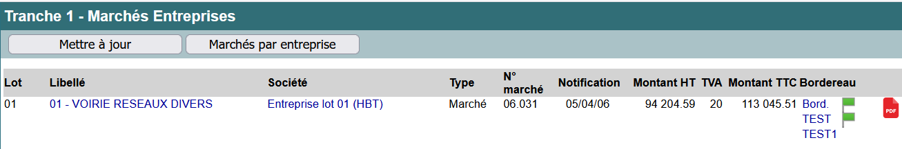 Le sous-dossier Marchés peut permettre le dépôt de documents liés aux marchés des entreprises : acte d'engagement, lettre de commande, contrat de sous-traitance, ...