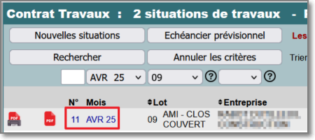 1) Ouvrir la situation (N° ou Mois dans la liste) :