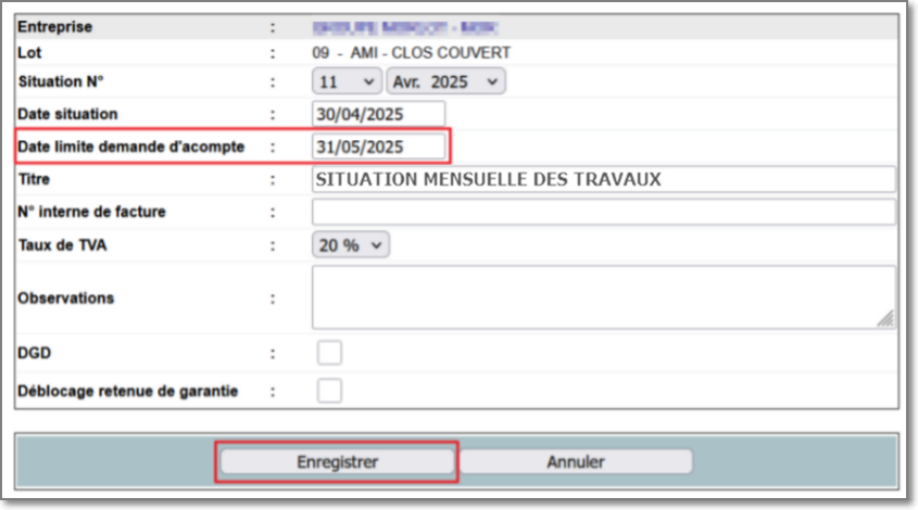 Si une entreprise n’a plus la possibilité de saisir son avancement et de valider sa situation c’est sans doute dû au dépassement du délai de demande d’acompte.