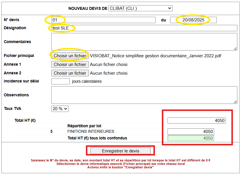 Renseignez les informations demandées et enregistrez le devis dans la page ci-dessous :