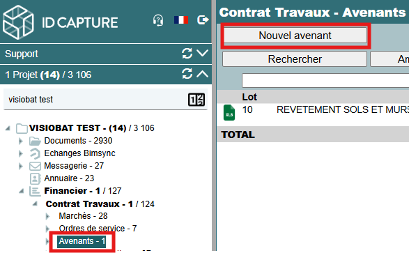 1) Se rendre sur la page des Avenants depuis le volet de navigation (à gauche) :