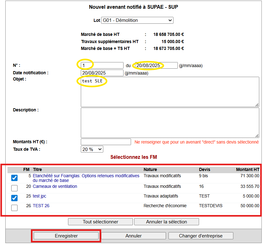 ⚠️ Vous pouvez également ajouter d'autres FTM validées sur l'Avenant :