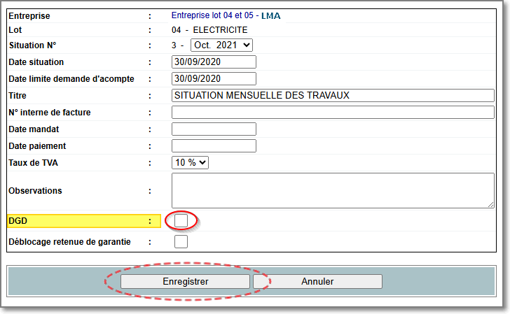puis cocher la case DGD en bas du cadre et enregistrer.